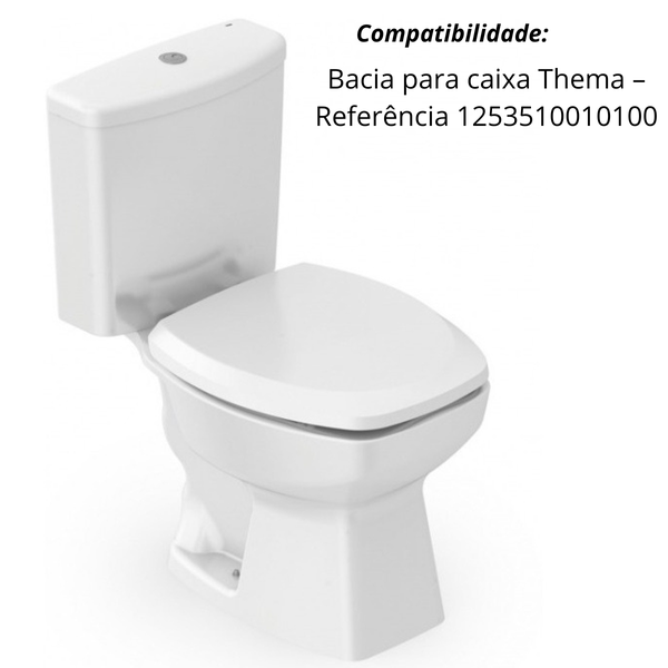 Compatível com os seguintes modelos de vasos sanitários Referência 1253510010100 - Bacia para caixa Thema. Referência 1253010010100 - Bacia convencional Thema.