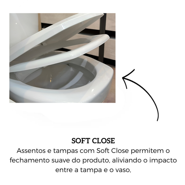 Softclose® Assentos e tampas com a Tecnologia Softclose permitem o fechamento suave do produto, aliviando o impacto entre a tampa e o vaso, evitando incidentes com crianças e ruídos com o fechamento da tampa, garantindo a durabilidade do produto.